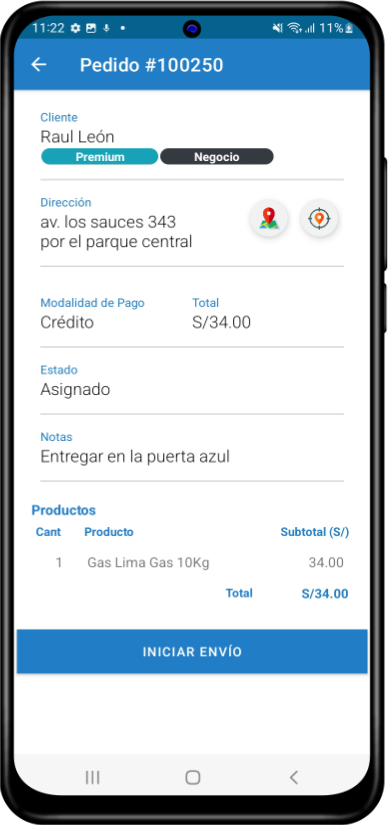 - Recepción del Pedido El encargado de la entrega recibe una notificación en su celular con toda la información necesaria del pedido para que pueda realizar la entrega de forma inmediata.